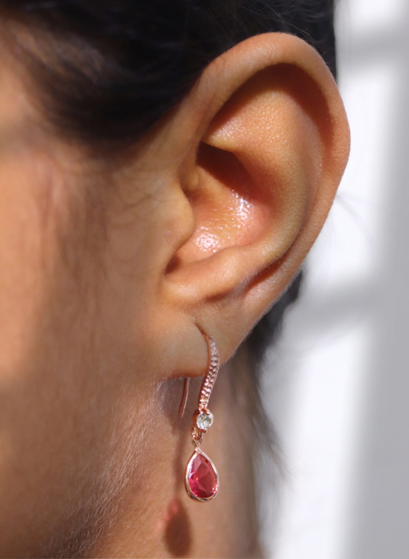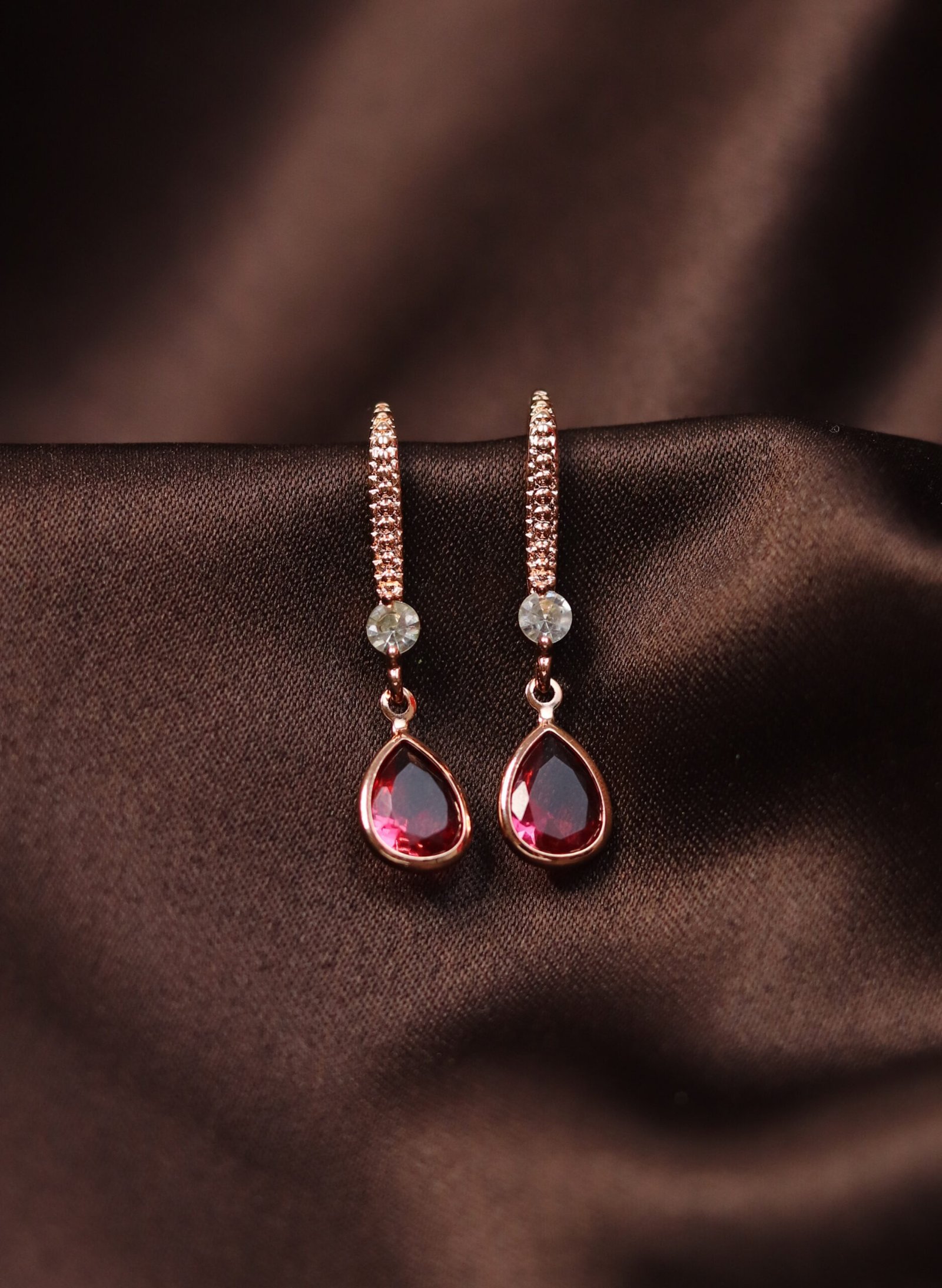 Turn heads with the bold elegance of these Crimson Drop Dangle Earrings. Featuring pear-shaped ruby-red crystals suspended from pavé-set hoops, these earrings exude sophistication and glamour. Accented with a clear crystal for extra sparkle, the rose gold-tone finish adds a modern twist to this striking design—perfect for evening wear, parties, or romantic occasions.