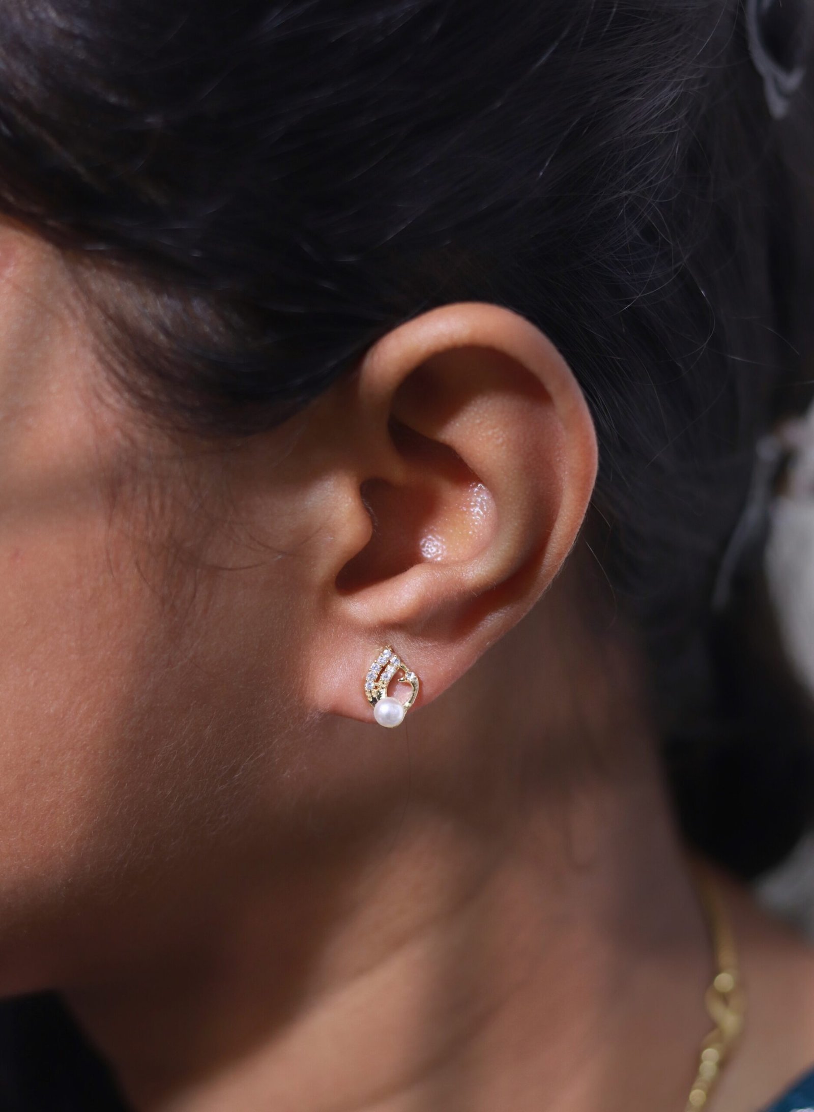 Grace your ears with timeless elegance with these pearl stud earrings designed for modern minimalism and classic sophistication. Featuring a smooth pearl drop and a curved crystal-studded frame, these earrings are the perfect blend of charm and shine.