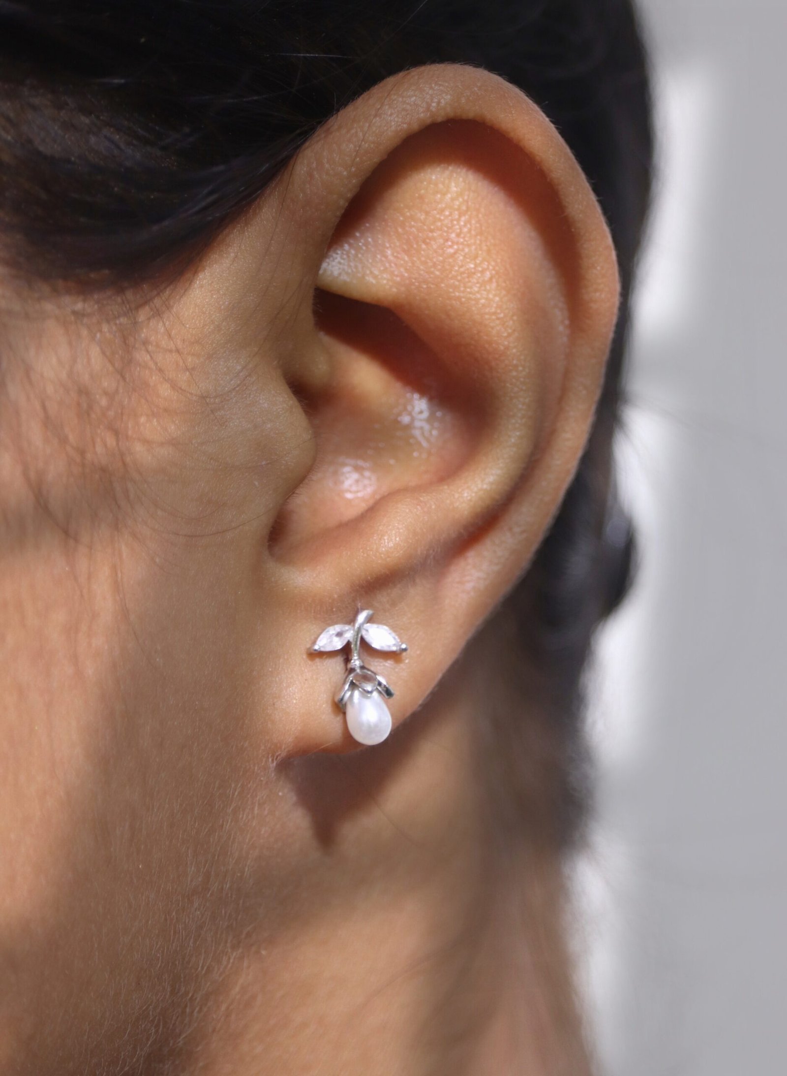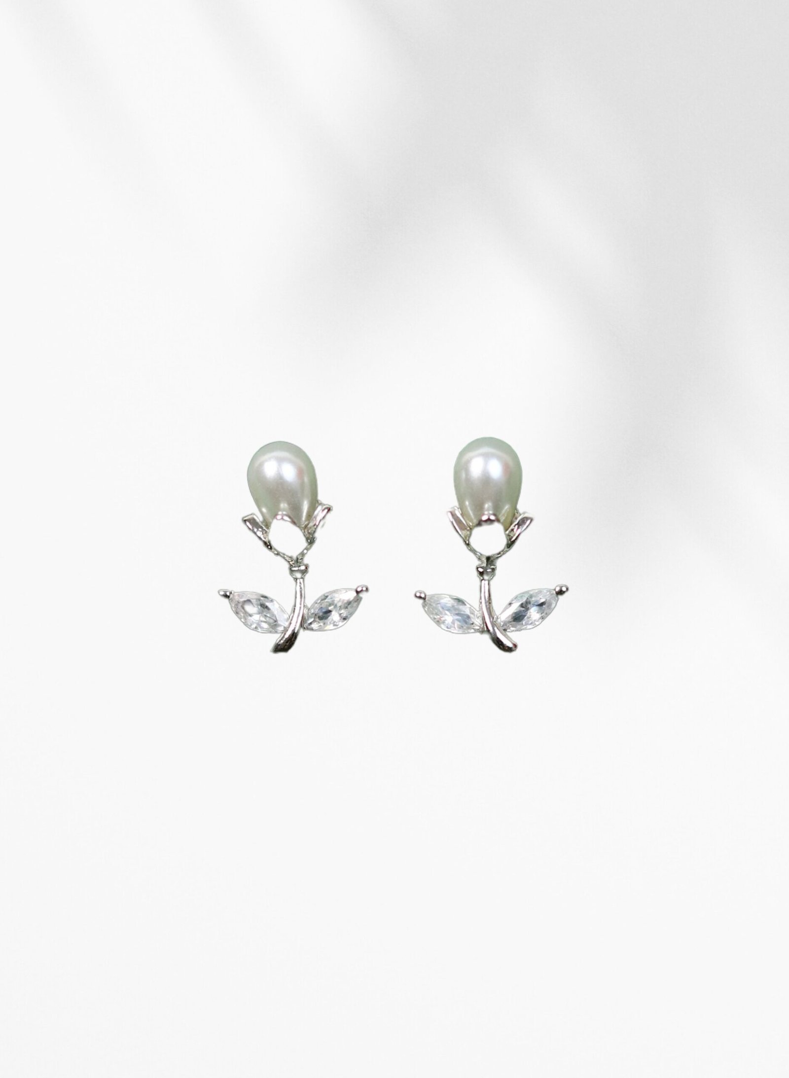 Delicately designed to mimic the grace of a blossoming flower, these Floral Pearl Bloom Earrings are the epitome of elegance and femininity. A lustrous teardrop-shaped pearl forms the bloom, cradled by petal-like prongs and complemented by crystal-clear marquise-cut stones that resemble leaves. Set in a gleaming silver-tone metal, these earrings offer a refreshing and romantic aesthetic—perfect for weddings, date nights, or adding a floral flourish to everyday attire.