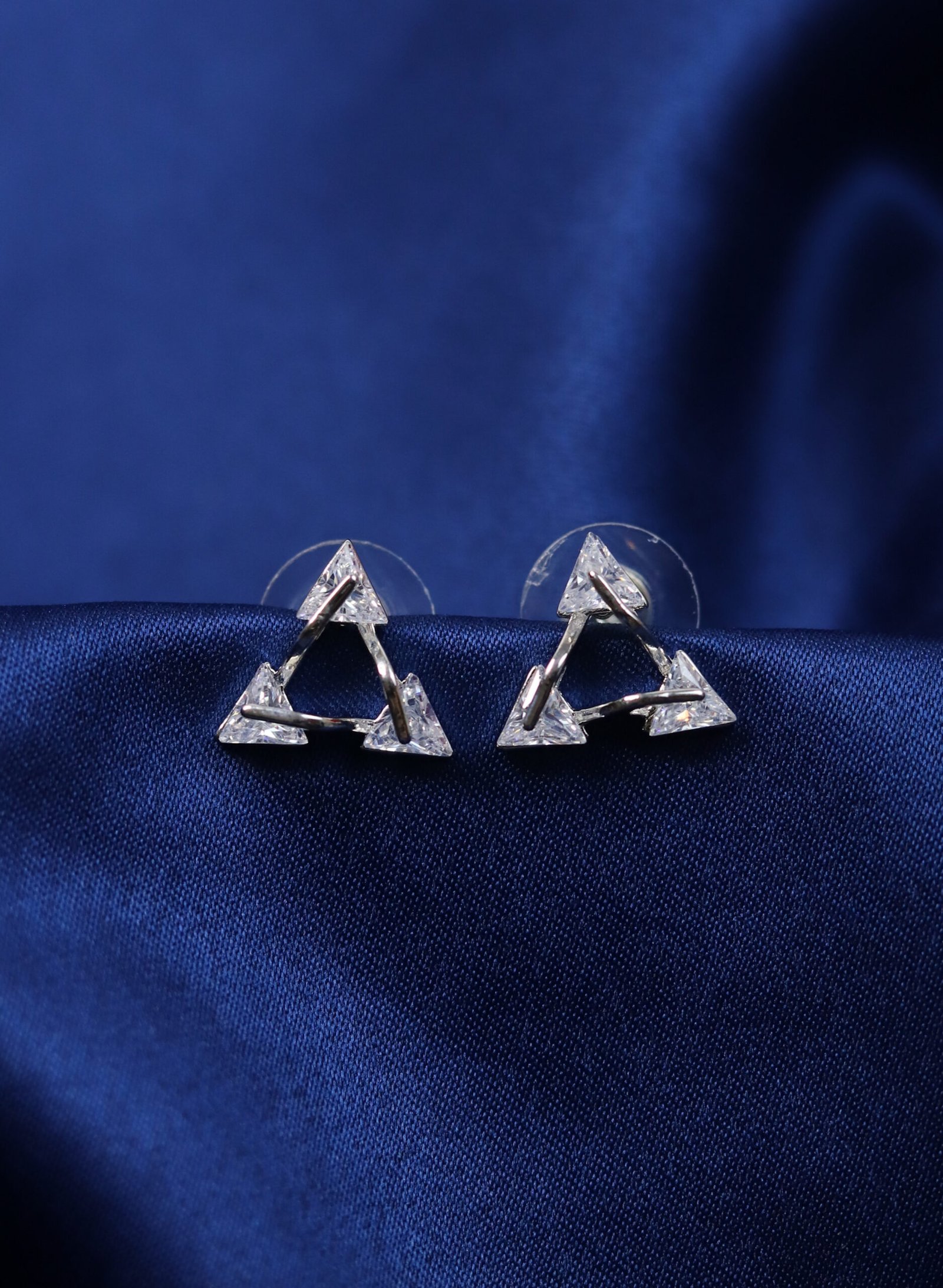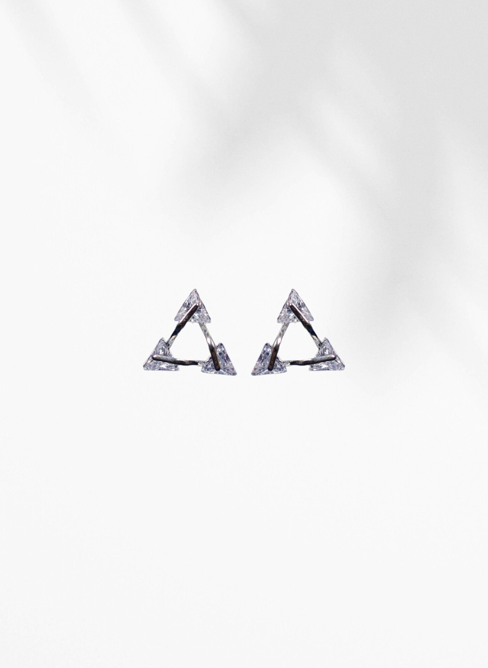 Make a bold statement with these contemporary geometric triangle stud earrings. Featuring a sleek open triangle design adorned with sparkling cubic zirconia stones, these earrings blend modern aesthetics with timeless elegance. Crafted for the fashion-forward individual, their minimalist yet striking form makes them ideal for both daily wear and special occasions. Lightweight and comfortable, these studs are a chic addition to any jewelry collection.
