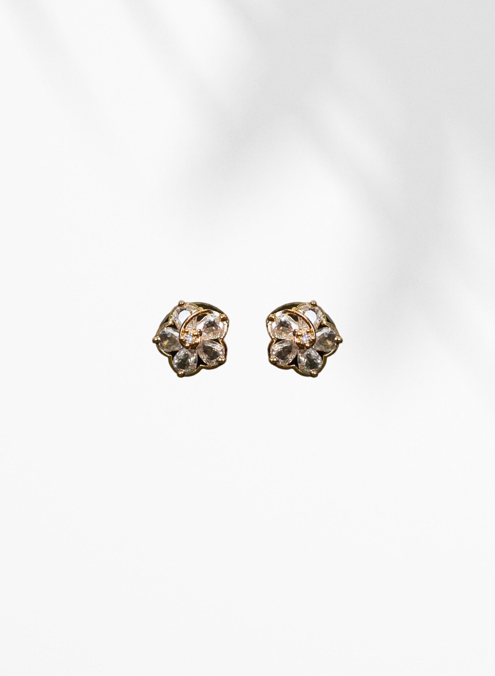 Gold Plated Floral Stud Earrings for Women | Crystal Flower Design Daily Wear Earrings