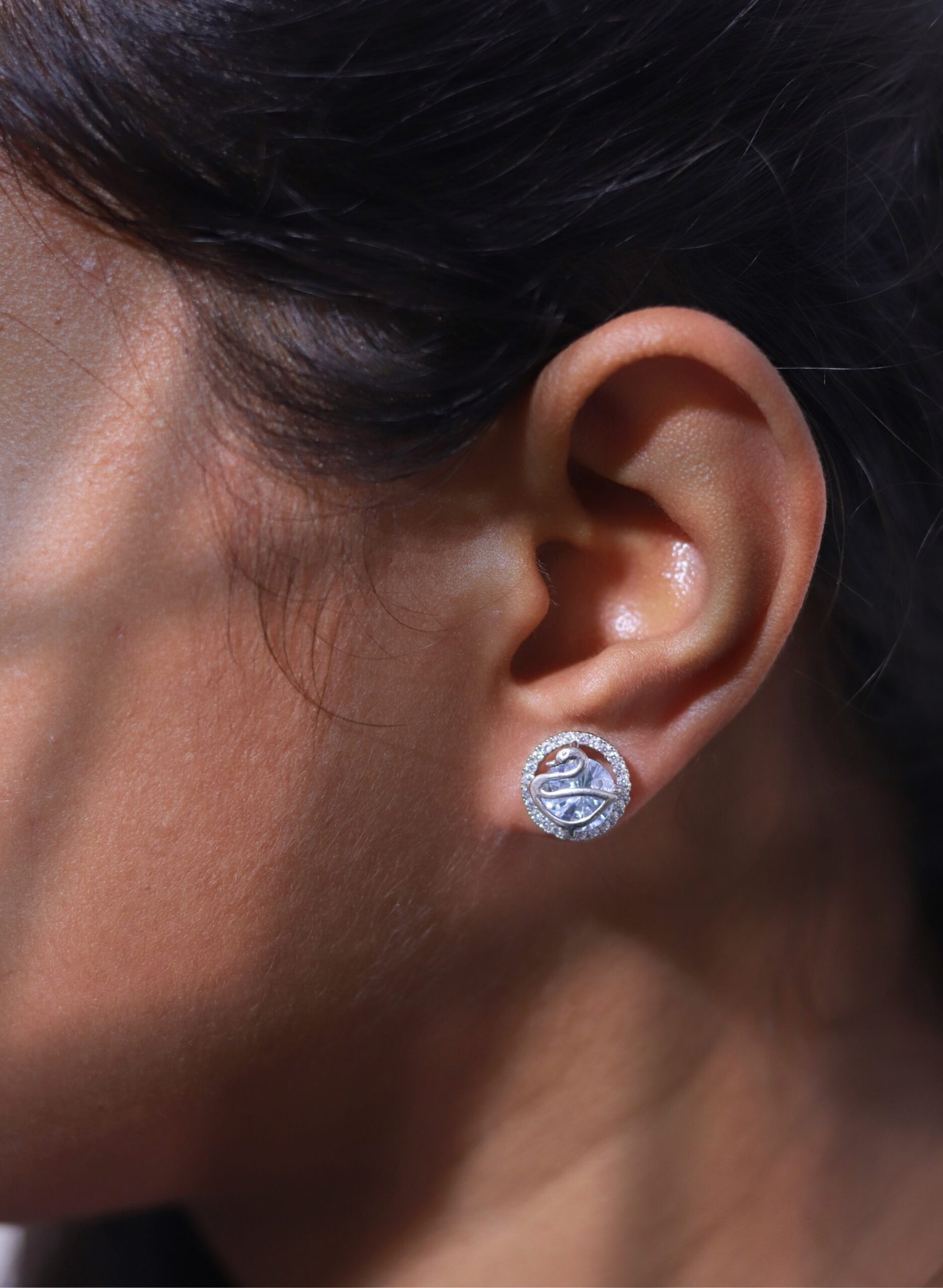 Graceful and dazzling, these swan-inspired stud earrings are a symbol of elegance and beauty. Featuring a sparkling crystal center encased in a delicate swan motif, each earring is surrounded by a halo of brilliant white stones for added brilliance. The swan design adds a unique and sophisticated touch, making these earrings ideal for both casual charm and evening glamour. Perfect for gifting or treating yourself to a little luxury.