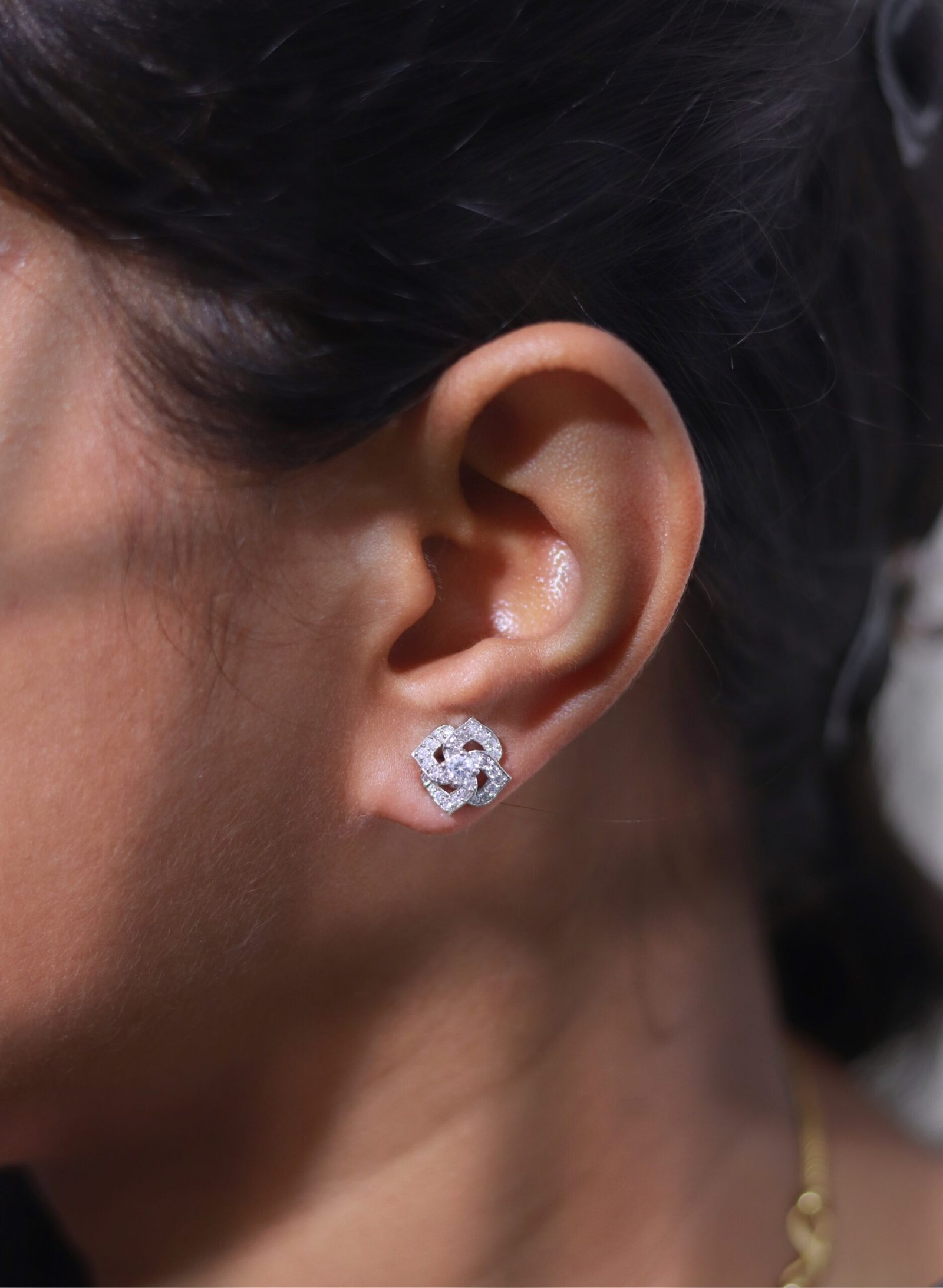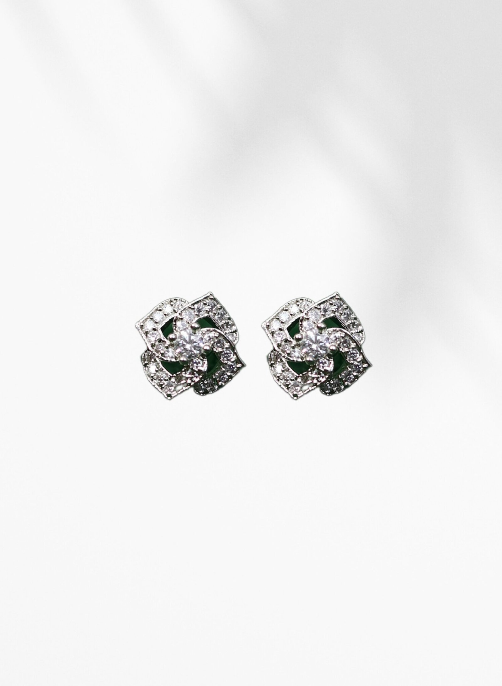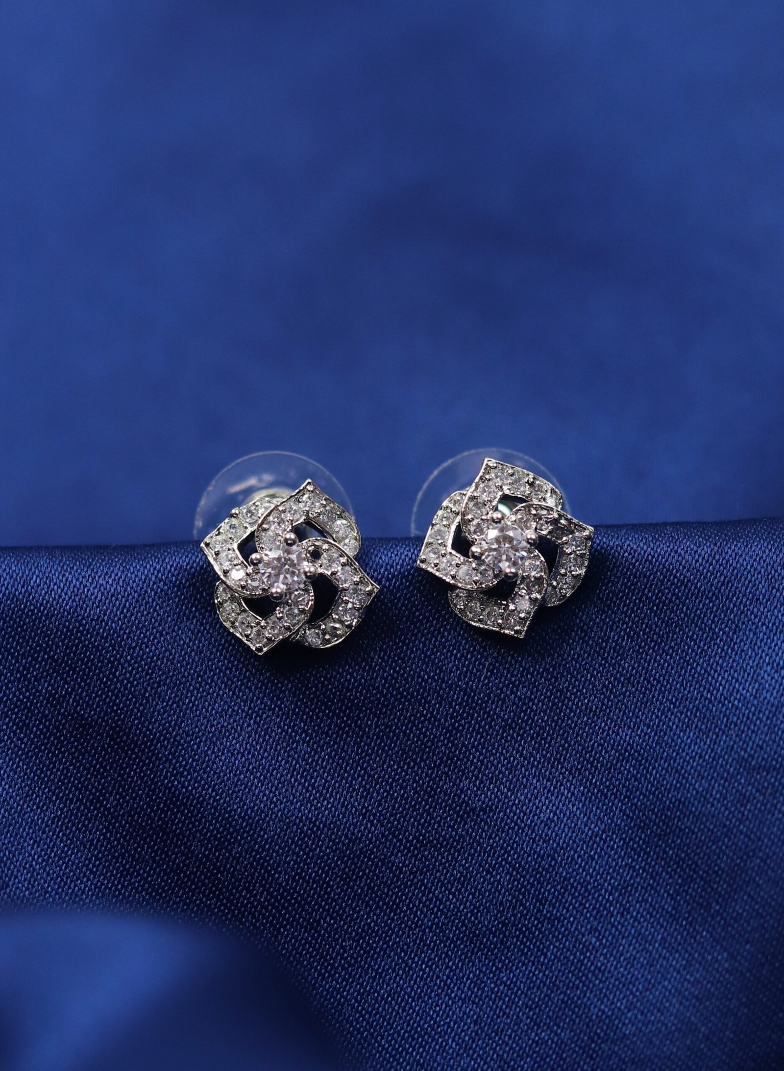 Elevate your everyday elegance with these intricately designed swirl stud earrings. Crafted in a radiant silver-tone with brilliant white and dark-toned crystals, these studs mimic a floral swirl for a timeless yet modern appeal. Perfect for both daily wear and special occasions.